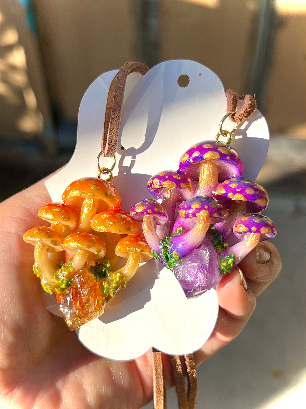 Fairy Pink Shiny Mushroom earrings